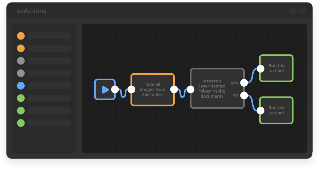 Every workflow in ezActions flows horizontally. Data and commands start at the left and move to the right.