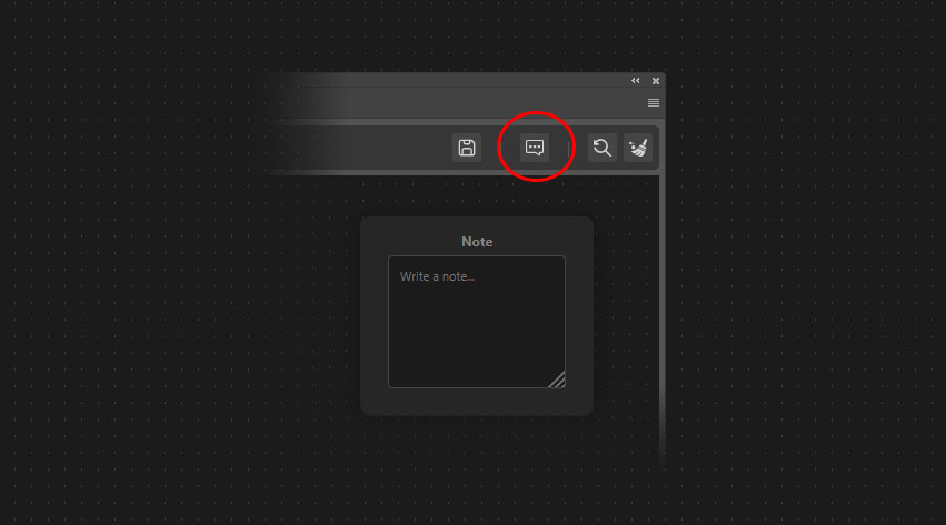 Important: Unlike all other nodes in ezActions, the Note node cannot be found in the standard Node Library sidebar. Instead, you must add it to your canvas by clicking the Note icon located in the Top Navigation Toolbar.